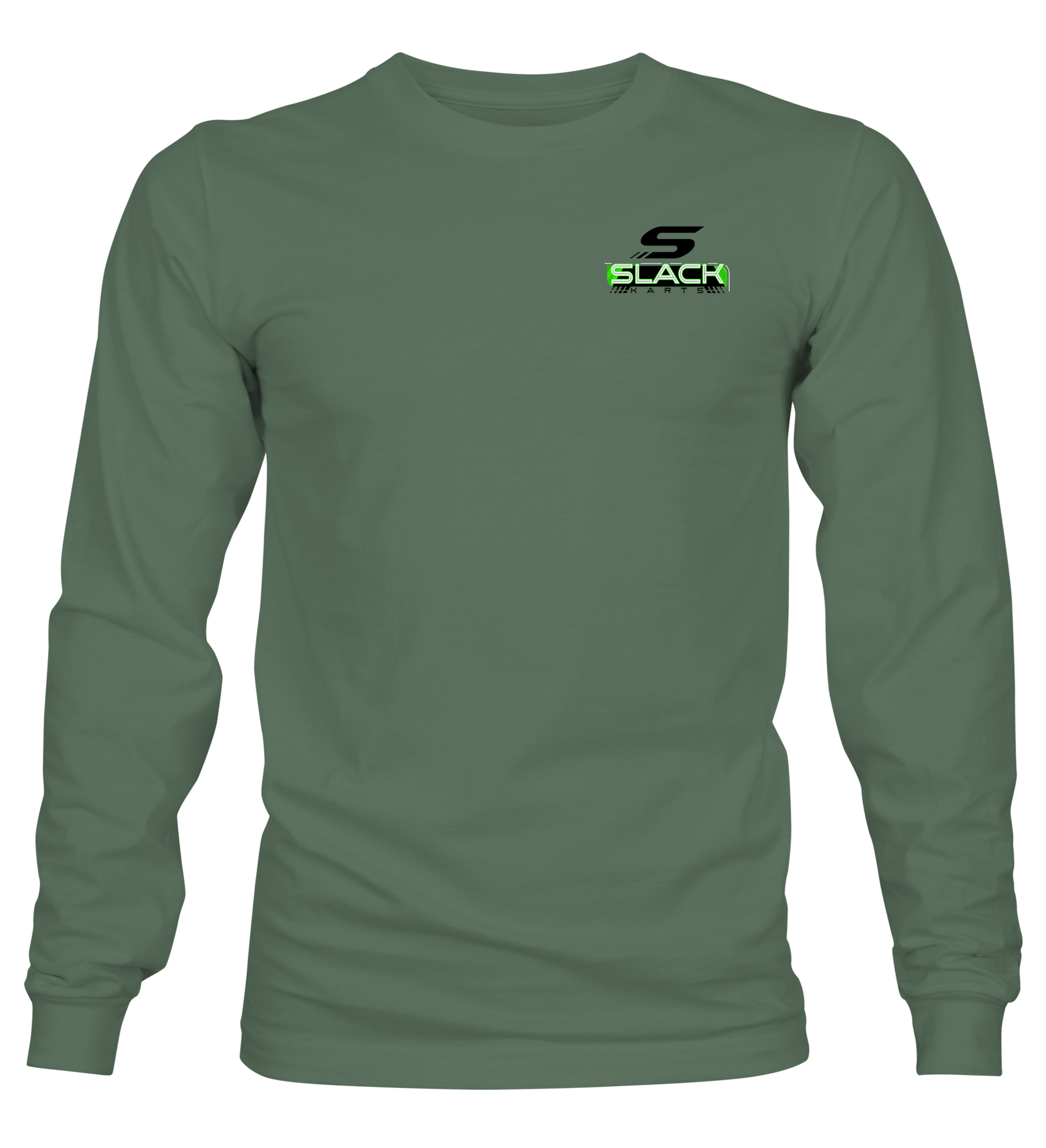 Slack™ long-sleeved T-shirt. Adult sizes are in Military Green and the Youth sizes are in Dark Gray. Available in Youth Small-Youth Large & Adult Small-3XL; please select your size from the dropdown menu.