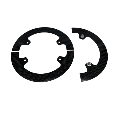 4 Bolt Pattern Carbon Fiber Gear guards come complete with spacers installed on one half.