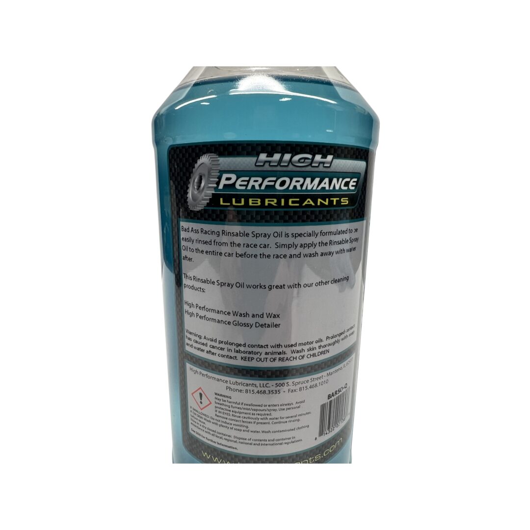 Bad A$$ racing rinsable spray oil is specially formulated to be easily removed from the race car/kart. Simply apply to the entire car/kart before the race and wash away with water after.