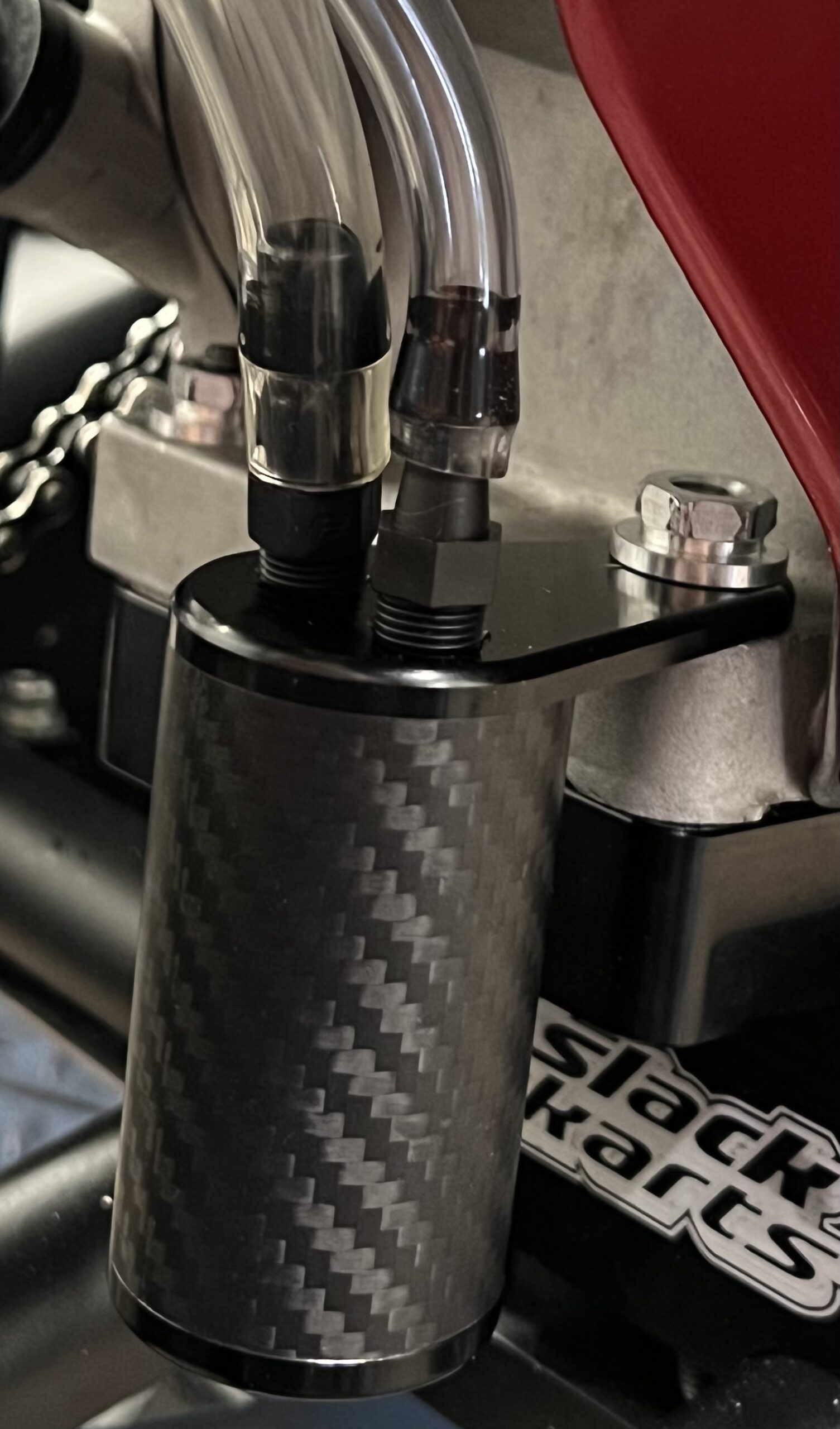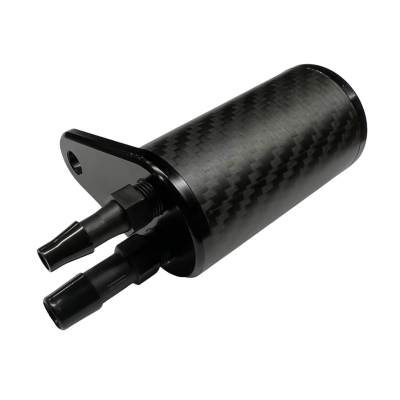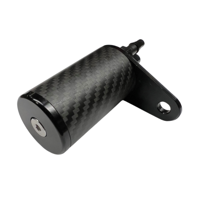 Carbon fiber oil catch can mounts easily to your Clone motor instead of the cassette hanger, and it’s half the size of our standard catch cans! Cans come with 1- 1/4 o.d. fitting and 1 5/16 o.d. fitting.